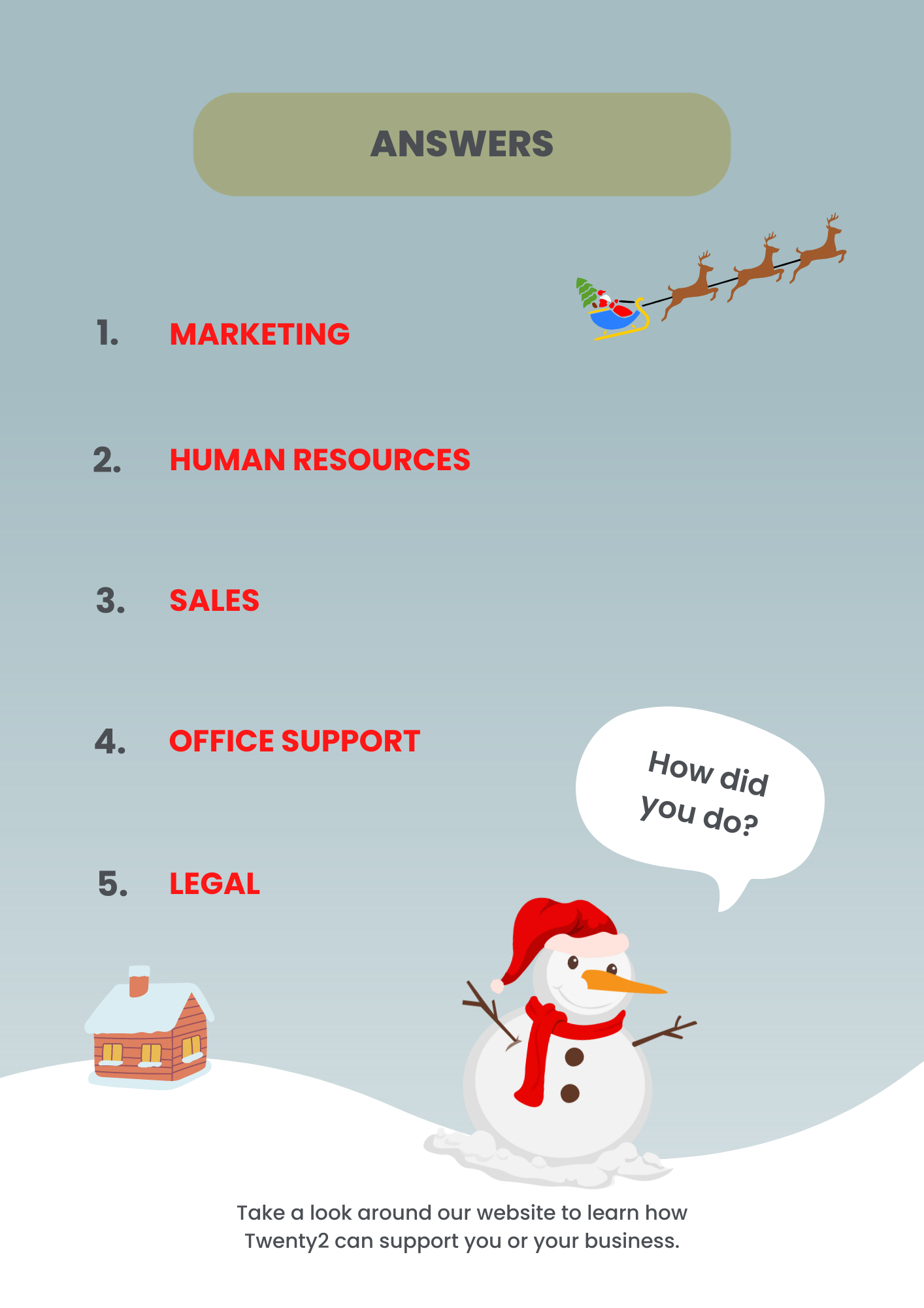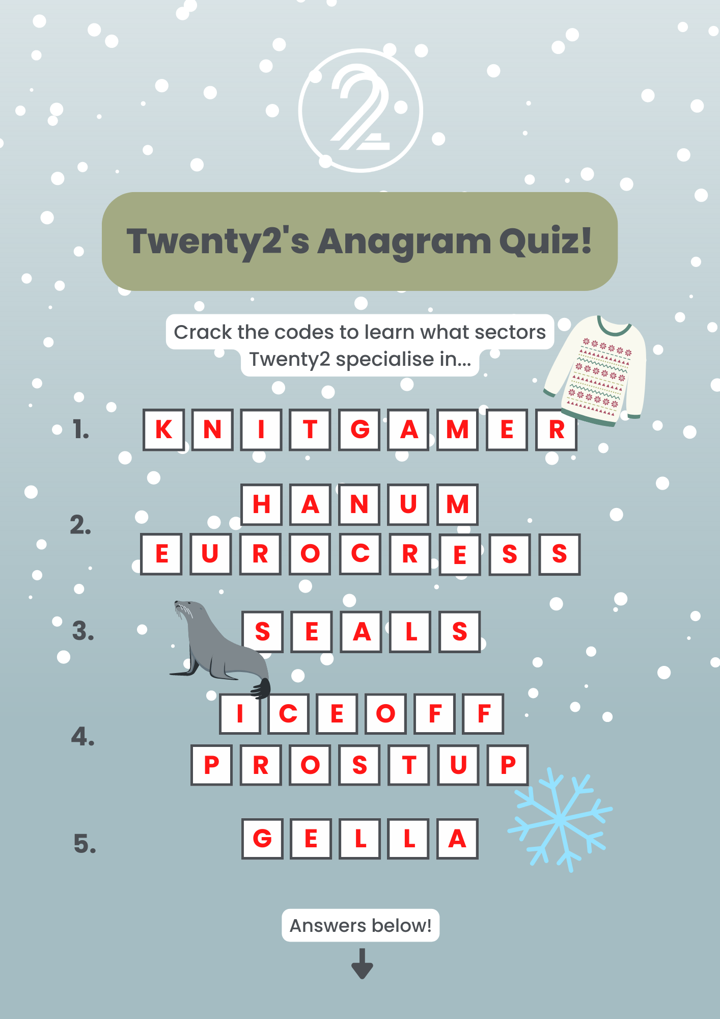 Hint: All of the anagrams are sectors that Twenty2 specialise in. Good luck!